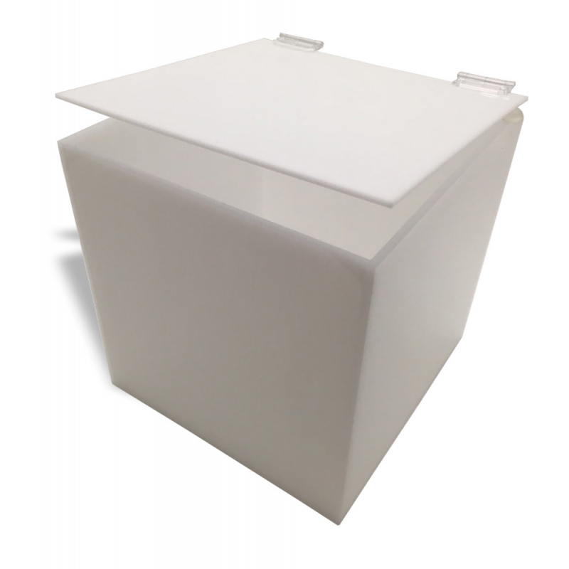 White 5-sided 1/8" Thick Acrylic Box comes with a solid lid with hinged lids. This product is perfect for storage and organization, whether it's for the home or for your business. With this solid acrylic white box, you can easily both organize your items and keep them safe from water, bugs, and dust! Our hinges make it easy to open and close the lid, which will help keep your items out of sight for a more uniform aesthetic.