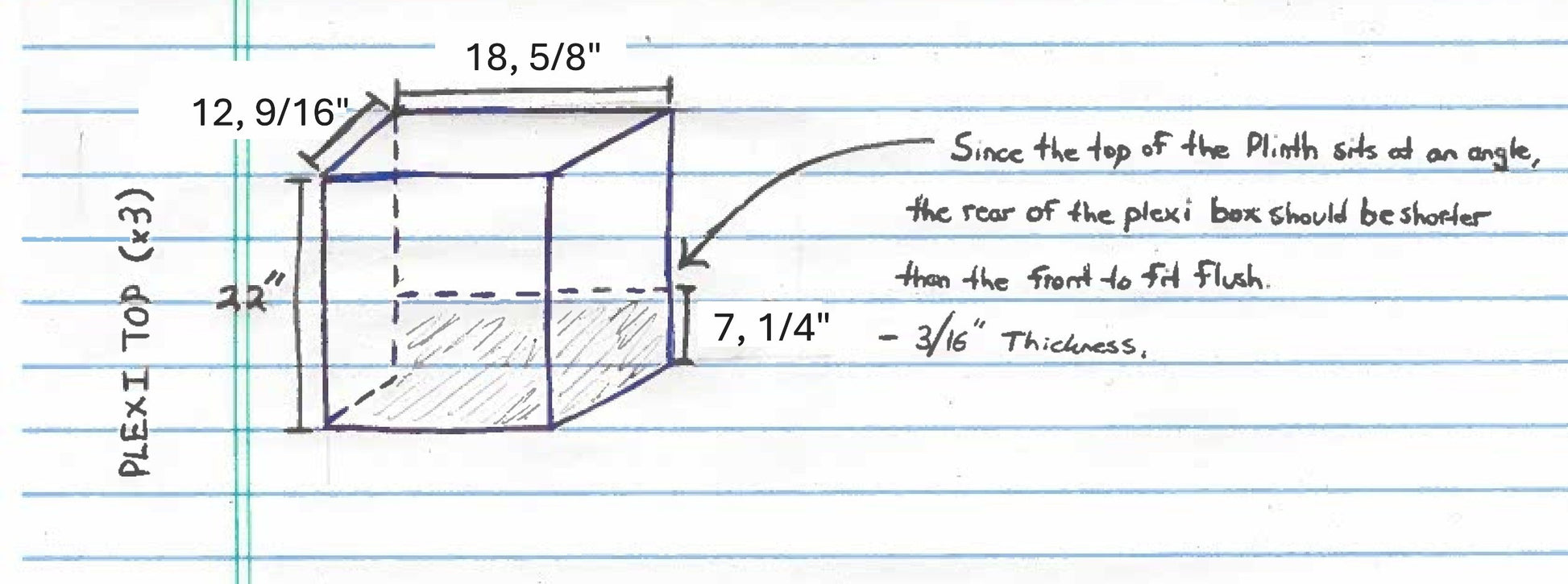 Internal dimensions of the boxes would be: Width - 18, 1/4", Length - 12, 3/16", 22" tall 3/16 " thick polished edges.