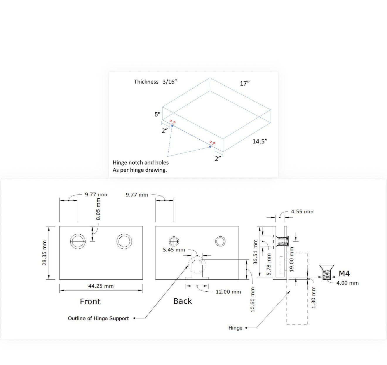 Custom-made clear Acrylic Record Player Dust Cover 3 /16" thick, polished edges per customer drawing with laser cut holes / 2 Boxes included.