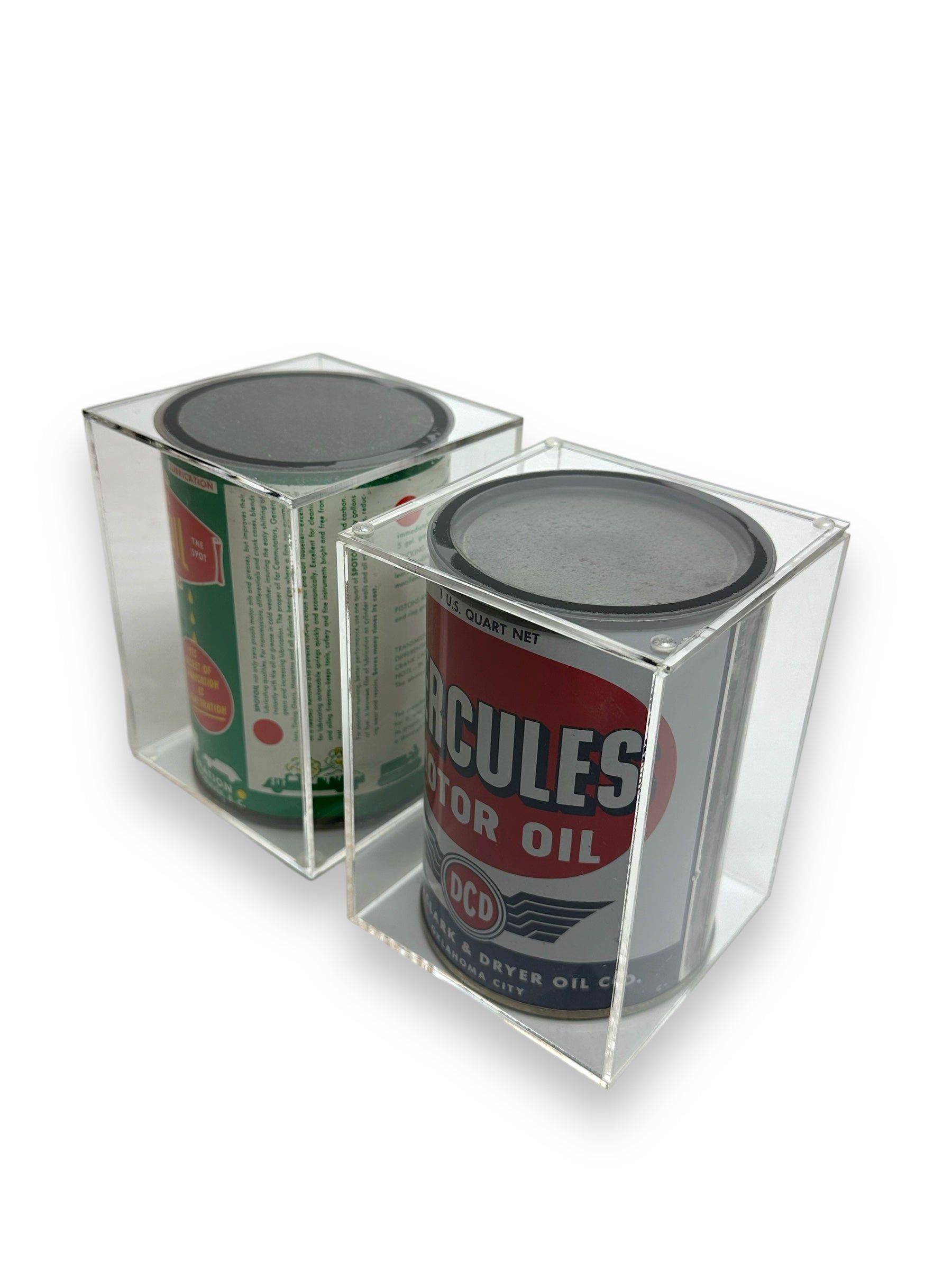 Introducing our versatile and chic acrylic display for old oil cans. This exquisite showcase combines functionality with modern aesthetics, making it the perfect addition to any collector's or enthusiast's treasure trove. Crafted with utmost care, this display offers a seamless and crystal-clear viewing experience, allowing your vintage oil cans to shine in all their glory. The transparent acrylic material not only guarantees maximum visibility but also provides excellent protection against dust, scratches, and fading caused by harmful UV rays. With its sleek design, this display effortlessly complements any interior and draws the eye to your stunning collection. Its sturdy construction ensures that the cans remain securely in place while making them easily accessible for admiration or examination. Moreover, the adjustable shelving system allows for customization, enabling you to showcase larger or smaller cans with ease. Whether you're a dedicated collector or a vintage aficionado seeking a sophisticated showcase, our exquisite acrylic display for old oil cans is bound to impress and elevate the display of your cherished collection to new heights.